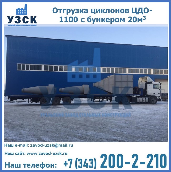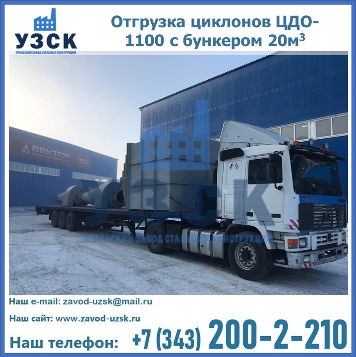 Циклоны ЦДО-1100 с бункером на 20 кубов были отгружены в декабре 2018 года в г. Новосибирск Кызыл.