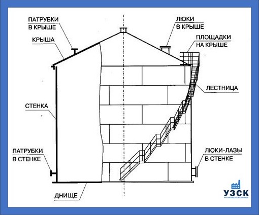 Конструкция резервуара 300 м3 состоит из: